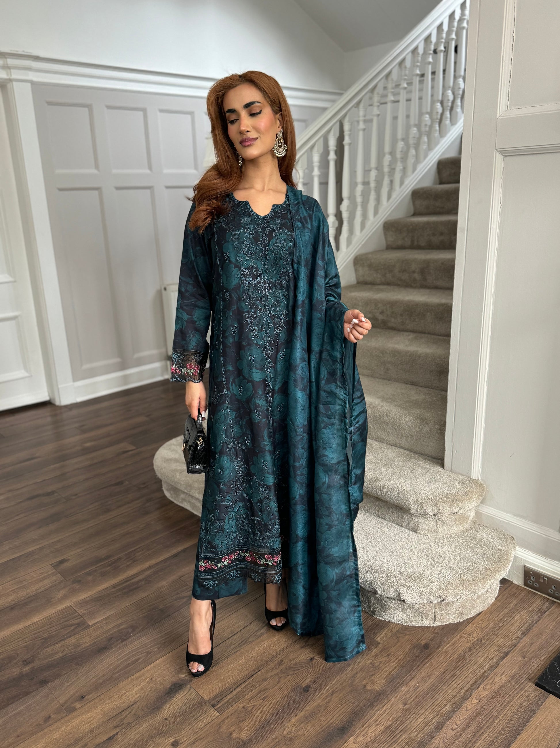 Original limelight outfit with pretty embroidery work, beautiful colours and a matching duppata. A beautiful 3pc fit, perfect for any occasion.